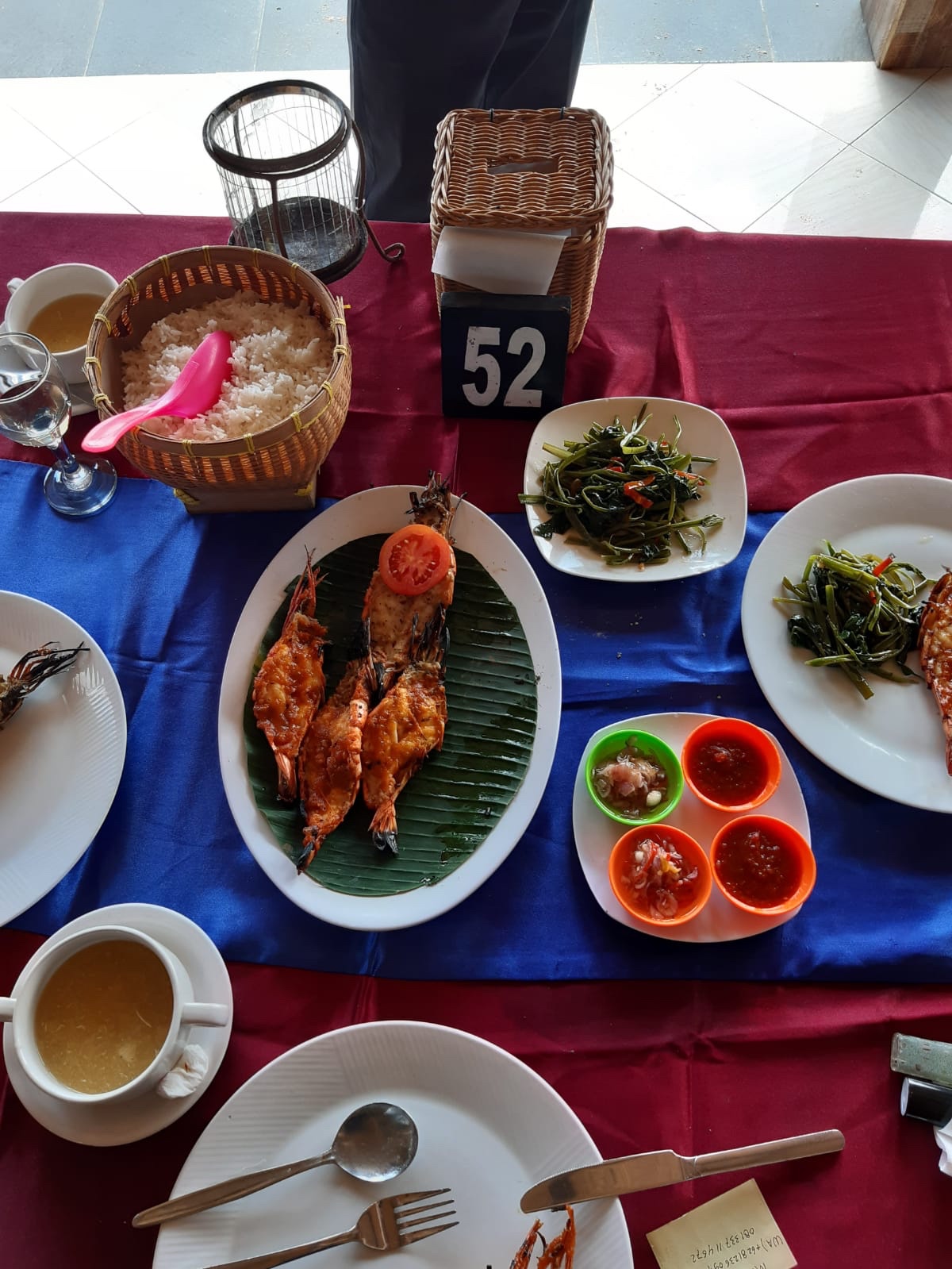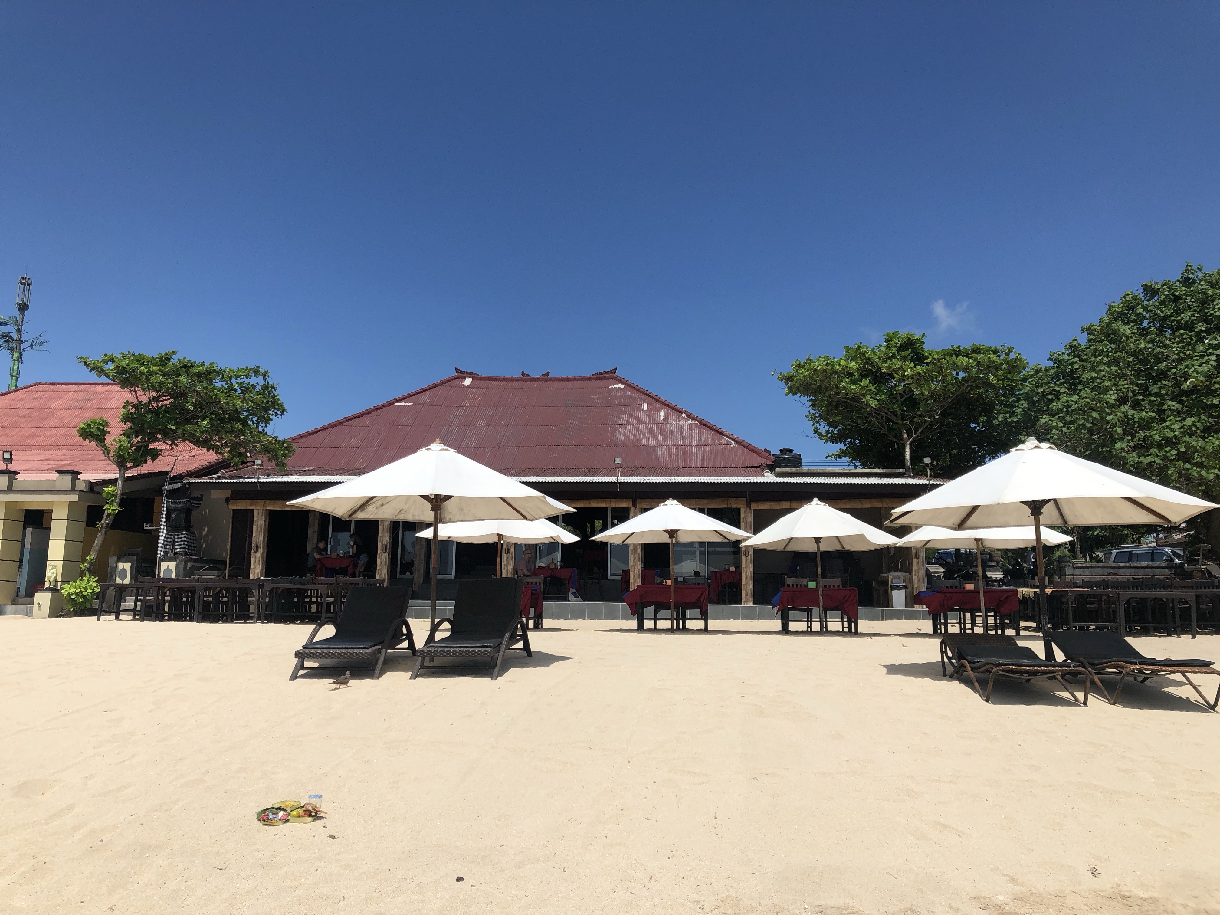 Na achttien uur vliegen kwam ik aan in Bali. Voordat ik rechtstreeks naar de villa werd gebracht had ik eerst nog een tussenstop bij een visrestaurant aan zee. Daar heb ik heerlijke grote garnalen gegeten met groente, rijst en een wijntje.