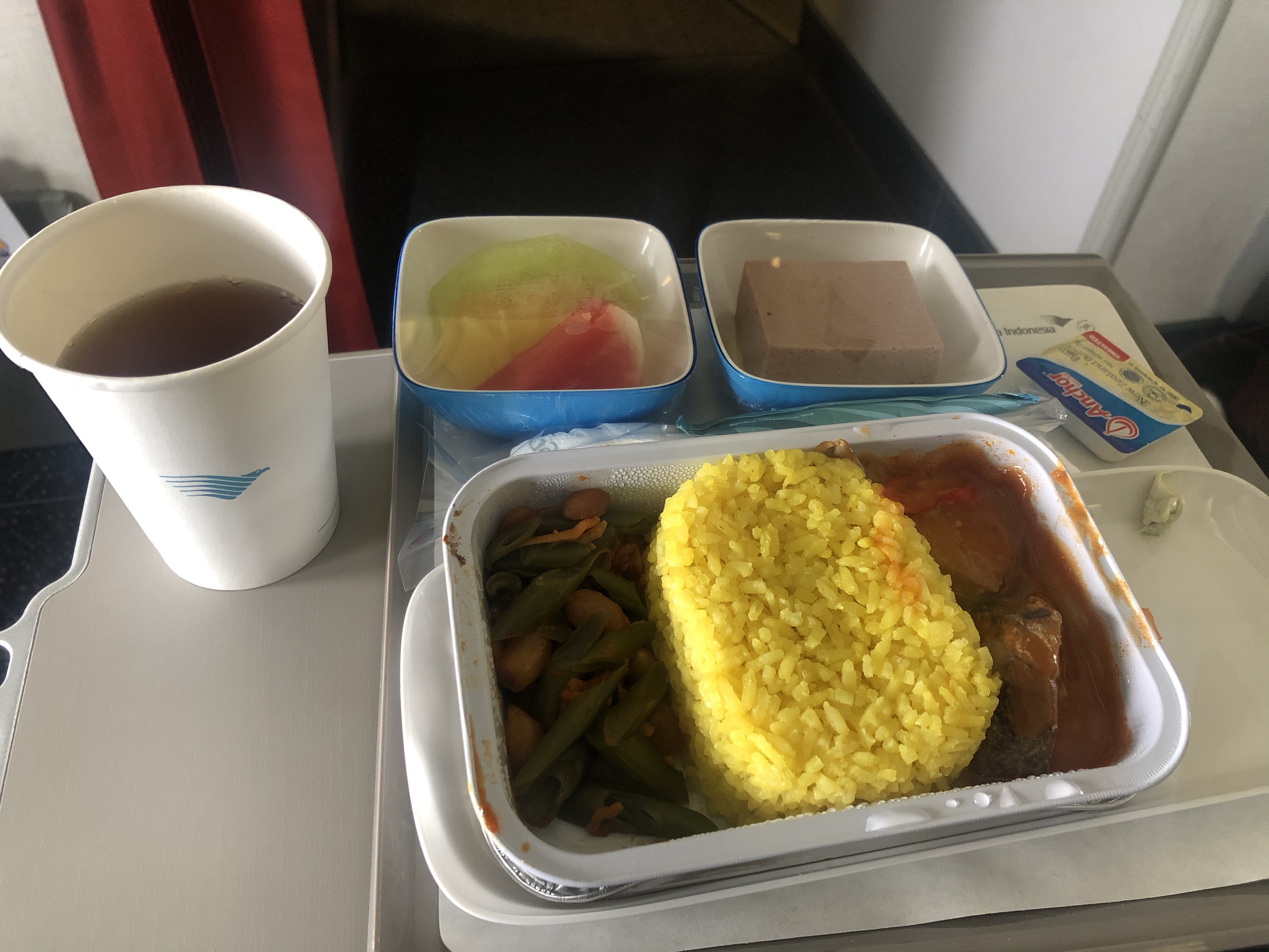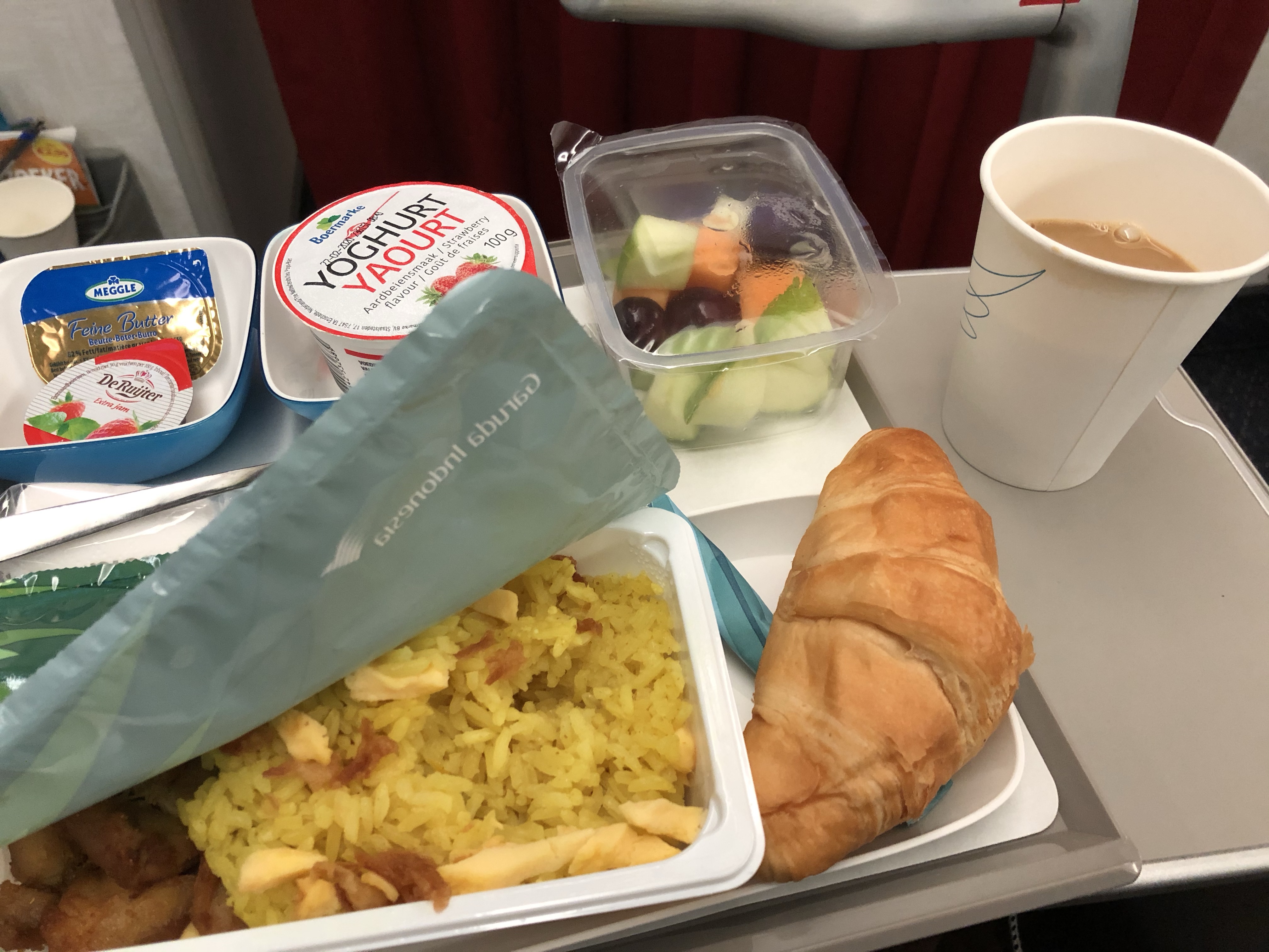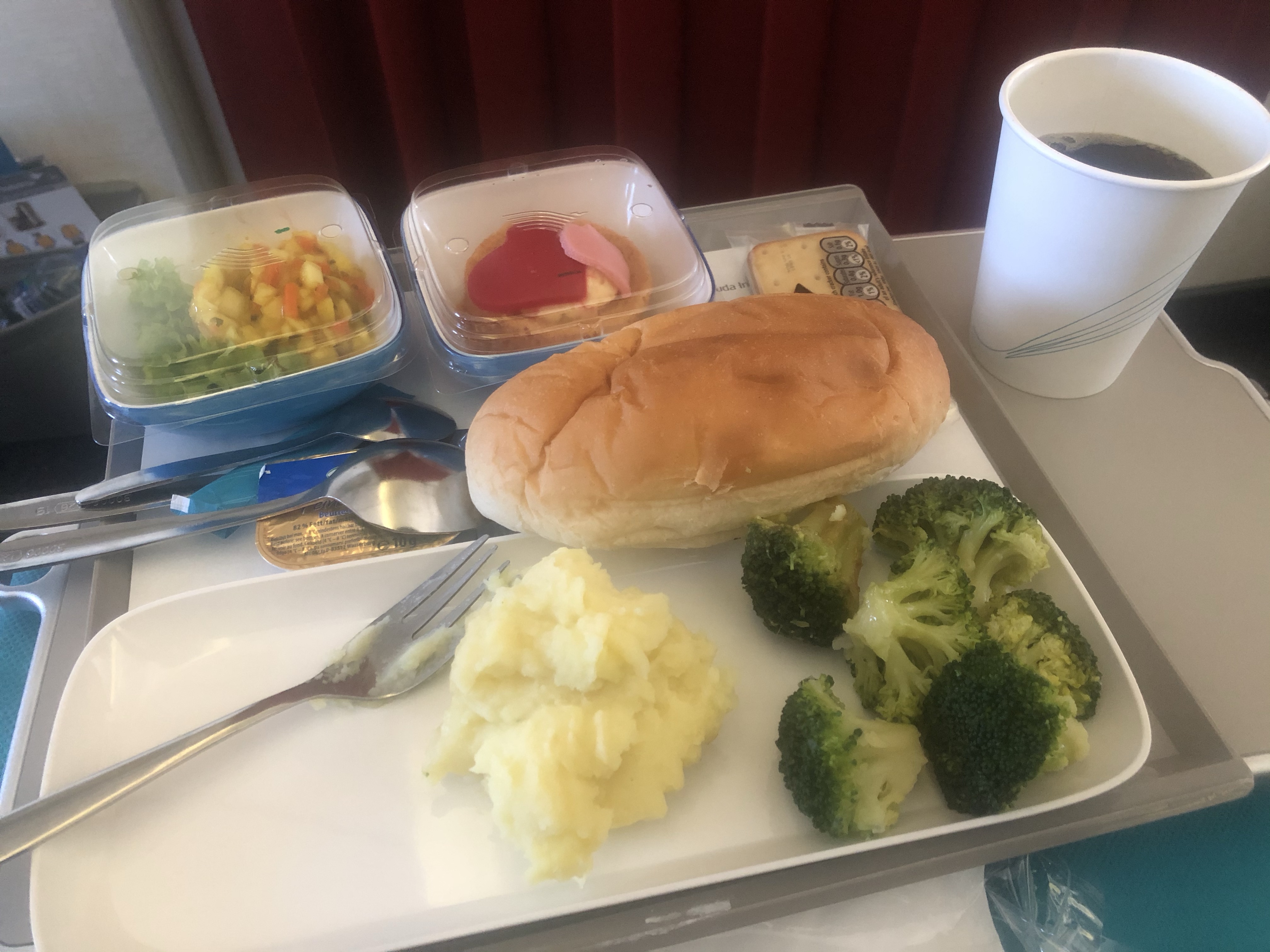 Na eenmaal ingecheckt te hebben ben ik het vliegtuig ingestapt. De voorste rij (Economy Class) met extra beenruimte. Ook waren er veel stoelen onbezet en kon ik bijna de hele reis liggend voortzetten.