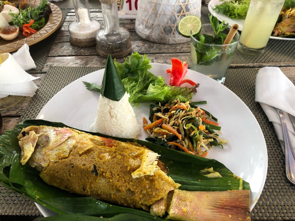 Na de tempels ben ik doorgereisd naar de plek van het oude verlaten pretpark: Taman Festival. Bij aankomst kwam ik erachter dat dit verlaten park al ruim 10 jaar gesloten is, vanwege loslopende (wilde) krokodillen. Niet veilig… en daarom doorgegaan naar het strand van Ubud waar ik had gezwommen, gedineerd (Pepesan Ikan) en ‘s avonds wat drankjes had gedronken met live, akoestische muziek.
