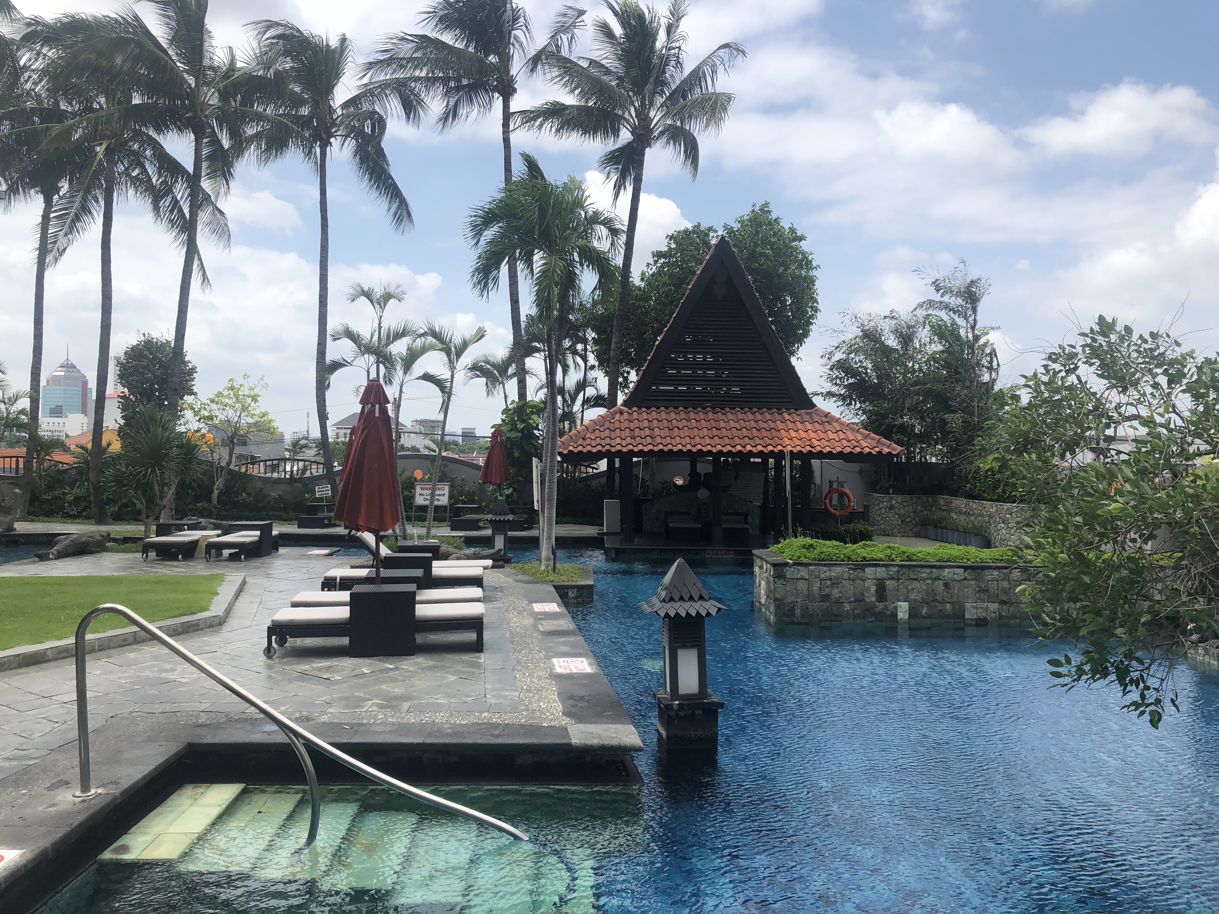 Vandaag was een reisdag van Bali naar Surabaya, een korte vlucht. Bij aankomst op het vliegveld van Surabaya werd ik als een koning ontvangen. Ik werd door een luxe taxi, geregeld door het hotel opgehaald en naar het hotel gebracht. Bij het hotel werd ik ook als koning behandeld. De bagage werd voor je naar de kamer gebracht en ik werd ontvangen met een welkomstdrankje. (De kamerfoto’s upload ik morgen.)