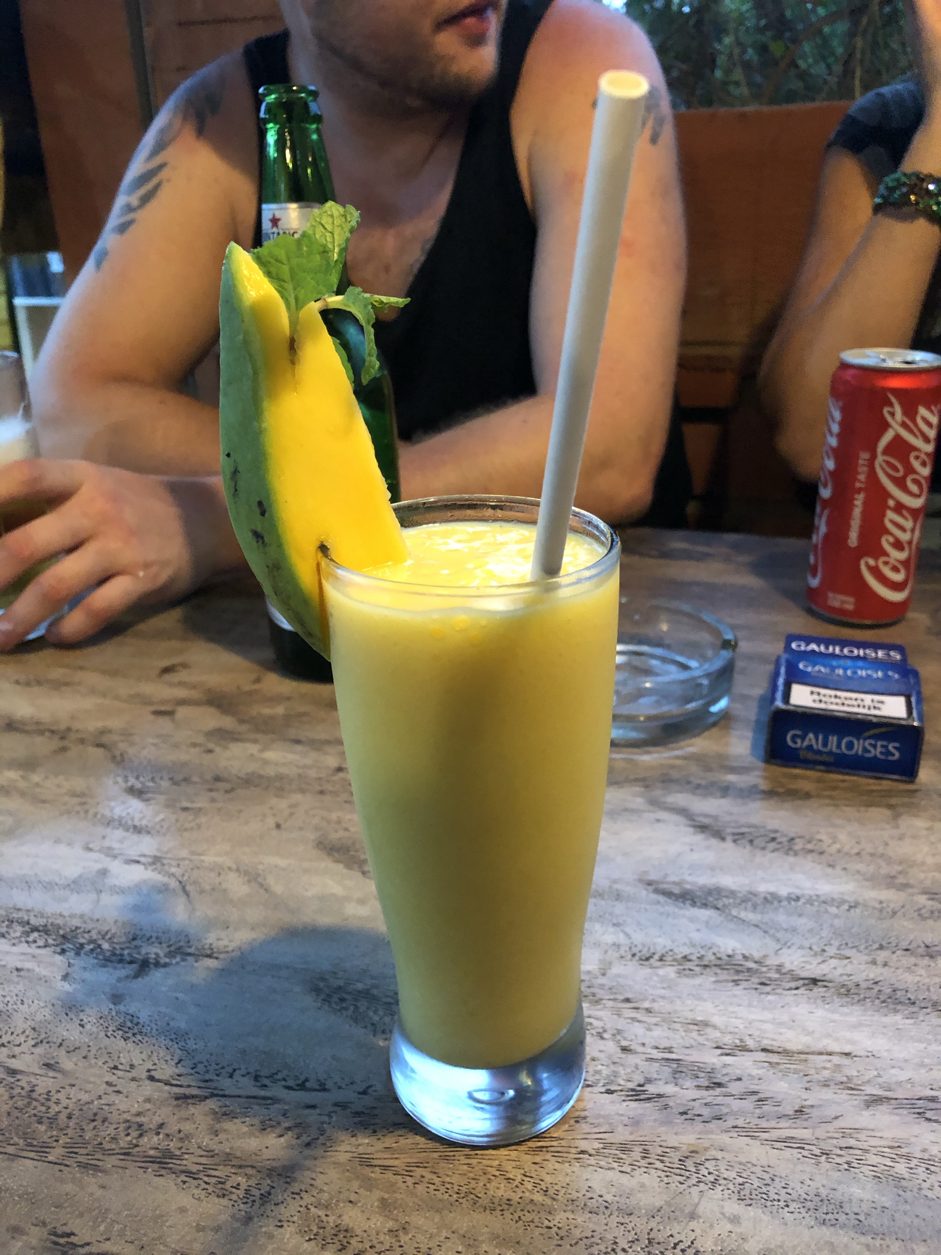 Vervolgens heb ik geluncht met “Gado Gado” en op een terras gezeten met een mango- en papaya smoothie en loempia’s.